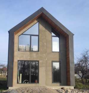 дом 5ом.кв., 2этажный, 2 комнаты по 25м.кв., стены пеноблоки с утеплителем, внутри обшиты сайдингом. Веранда 15м.кв.
