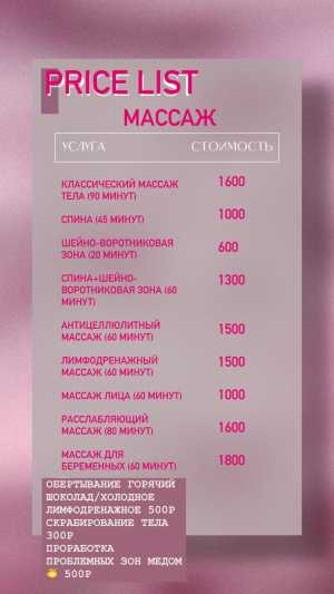 Вид услуг: Косметические и массажные;
