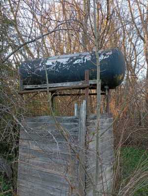 Емкость из нержавеющей стали, два отверстия по 85мм одно вверху, другое внизу, на разных концах. Толщина металла 1,5мм.