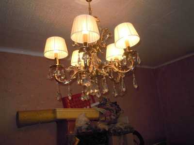2 люстры-одна на 5 лампочек с хрустальными подвесками и абажурчиками, практически новая, поскольку в связи с частыми...