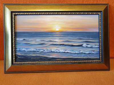 Продаётся две картины с изображением морского заката, выполненные масляными красками на картоне.